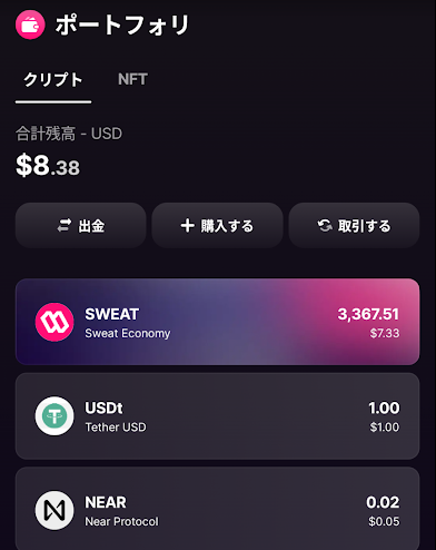 稼いだトークン、汗トークン(SWEAT)はロックして増やしているだけ。換金していない。
